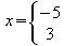 Folglich, wenn Sieschreiben möchten, müssen Sie x=left lbrace stack { -5 # 3 } right none eingeben.